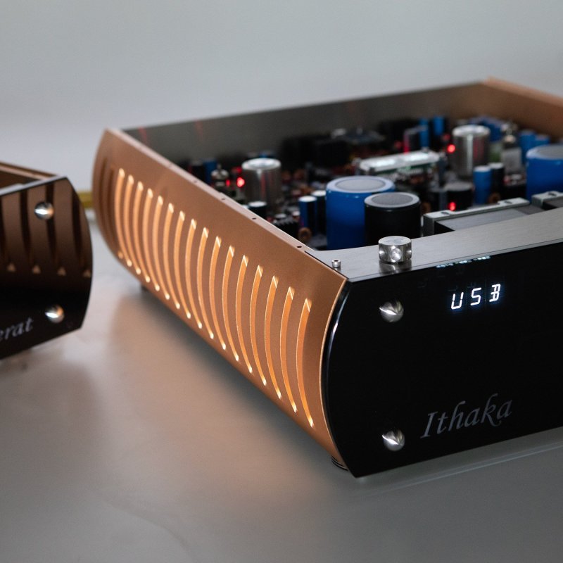 Převodník Ithaka D/A vznikl současně s vývojem nové generace naší technologie TriodeFet (nová generace, jak ji představujeme v zesilovačích QuintEssence), a rozhodně to nebyla náhoda. Naše špičková technologie pro linkovou úroveň – Inverted Triode – je již použita v našem vlajkovém převodníku Homerus. Myšlenka propojit jedno z našich nejlepších digitálních řešení s aktuálně nejvyspělejší technologií středně výkonného zesílení – TriodeFet – byla dlouho jen na papíře, nikoliv v bezprostředních plánech. Nicméně experimentální prototypy nás rychle přesvědčily, že tuto technologii je třeba uvést do praxe.