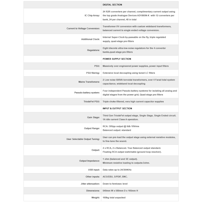 Tento převodník neobsahuje digitální filtr a zcela se vyhýbá negativním zvukovým vlastnostem, které vznikají u běžných architektur typu Delta-Sigma nebo Multibit.