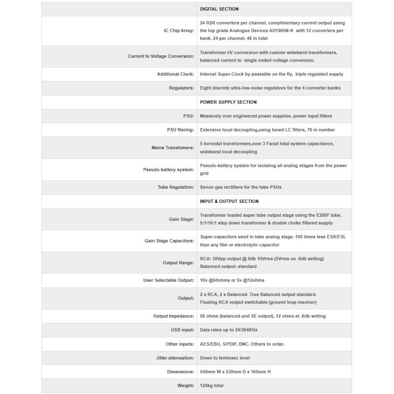 Tento převodník neobsahuje digitální filtr a zcela se vyhýbá negativním zvukovým vlastnostem, které vznikají u běžných architektur typu Delta-Sigma nebo Multibit.